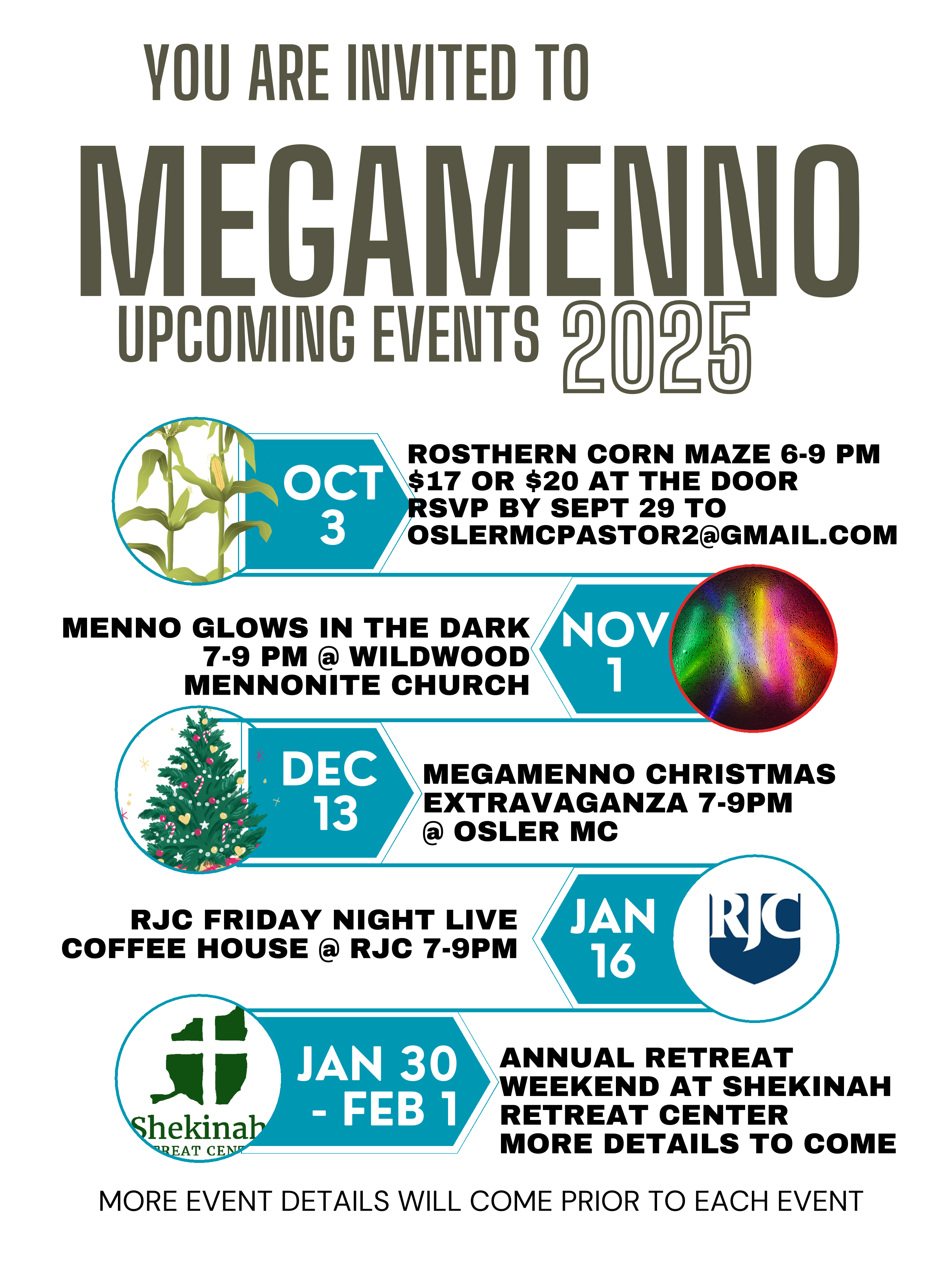 January 30-February 1 // MegaMenno Youth Retreat // Shekinah Retreat Centre // Save the Date! Details and registration available below!